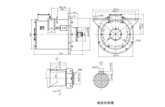 該電機系CJY14-6.7.9/550及CJY14-6.7.9/250二級傳動的交流變頻架線式礦用電機車主牽引電動機。該電機具有結構簡單、高效、節(jié)能、免維護、運行平穩(wěn)等優(yōu)點。